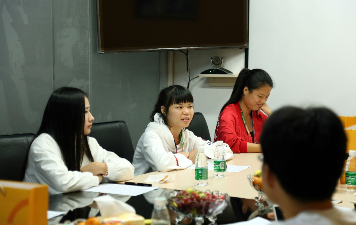 老师们在认真的听学生们讲述自己的事情状况以及在和同事相处的关系。